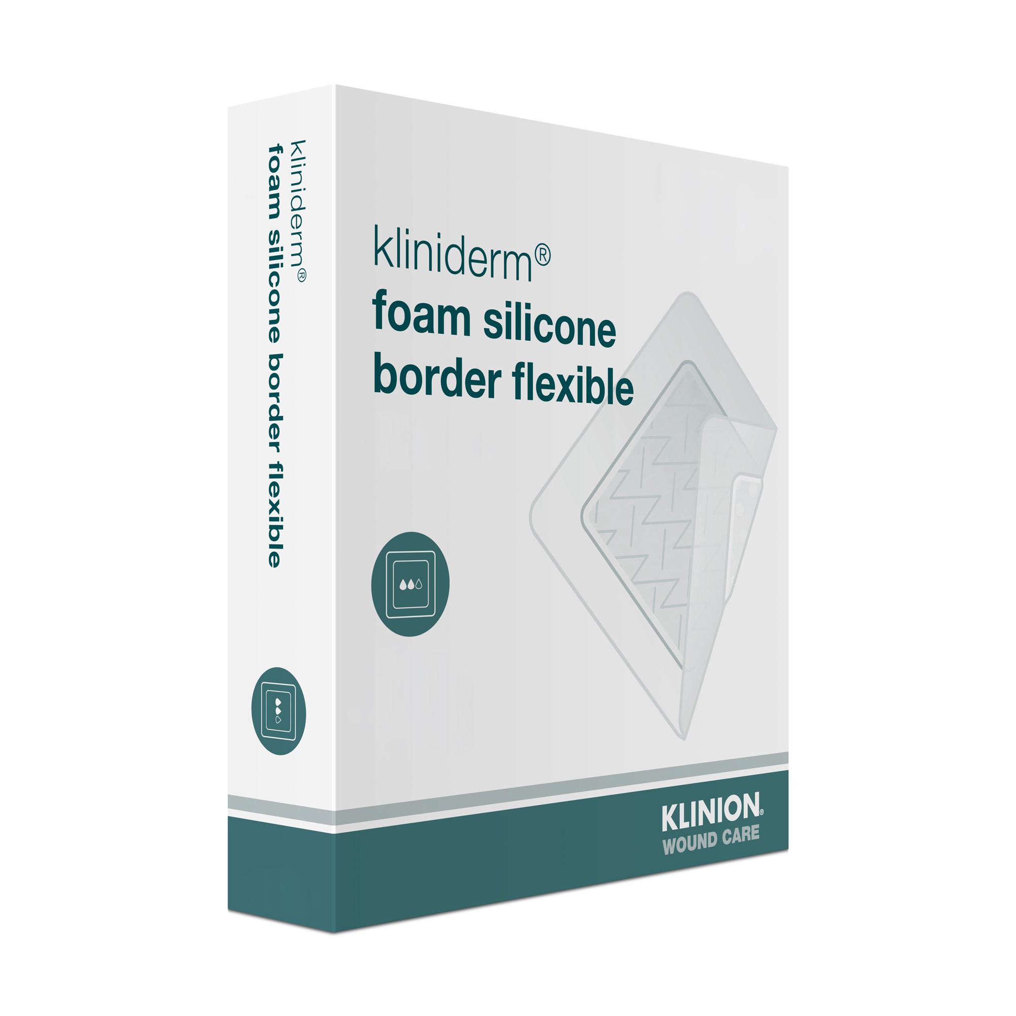 Klinion® Kliniderm® Foam Silicone Border Flexible features Z-shaped cuts in the foam, making the dressing more flexible and extensible to conform over joints and curved surfaces¹. The silicone border provides gentle adhesion, minimising trauma to the peri-wound skin during dressing changes¹. The foam core absorbs exudate while the outer layer allows vapor transmission and acts as a bacterial barrier¹.